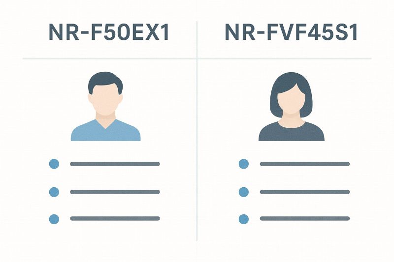 冷蔵庫は長く使う家電だからこそ、自分のライフスタイルや住環境に合ったモデルを選ぶことが大切です。ここでは「NR-F50EX1」と「NR-FVF45S1」をそれぞれおすすめできる人、そうでない人を具体的にご紹介します。