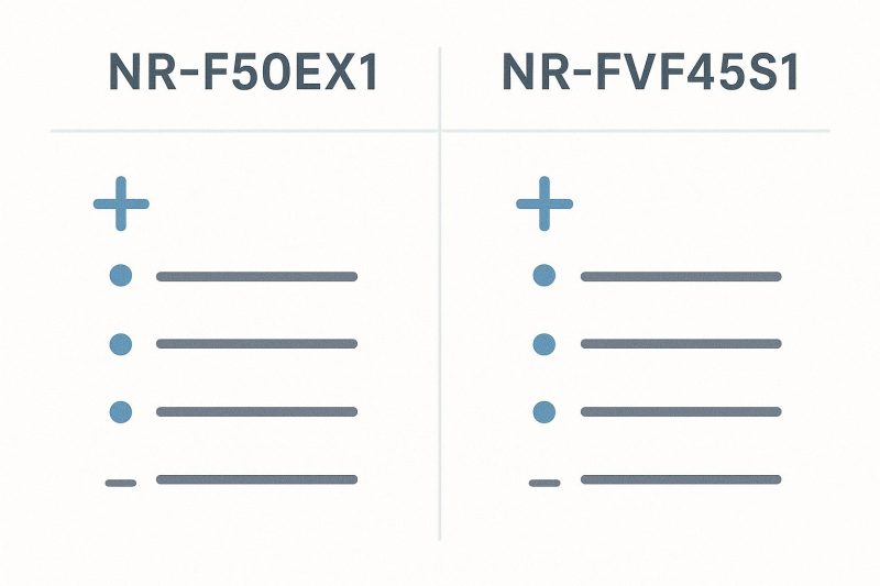 冷蔵庫選びでは、良い点(メリット)だけでなく、購入後に気になるかもしれない点(デメリット)も把握しておくことが大切です。ここでは、NR-F50EX1とNR-FVF45S1それぞれのメリット・デメリットを整理しながら、購入前にチェックすべきポイントをわかりやすくご紹介します。
