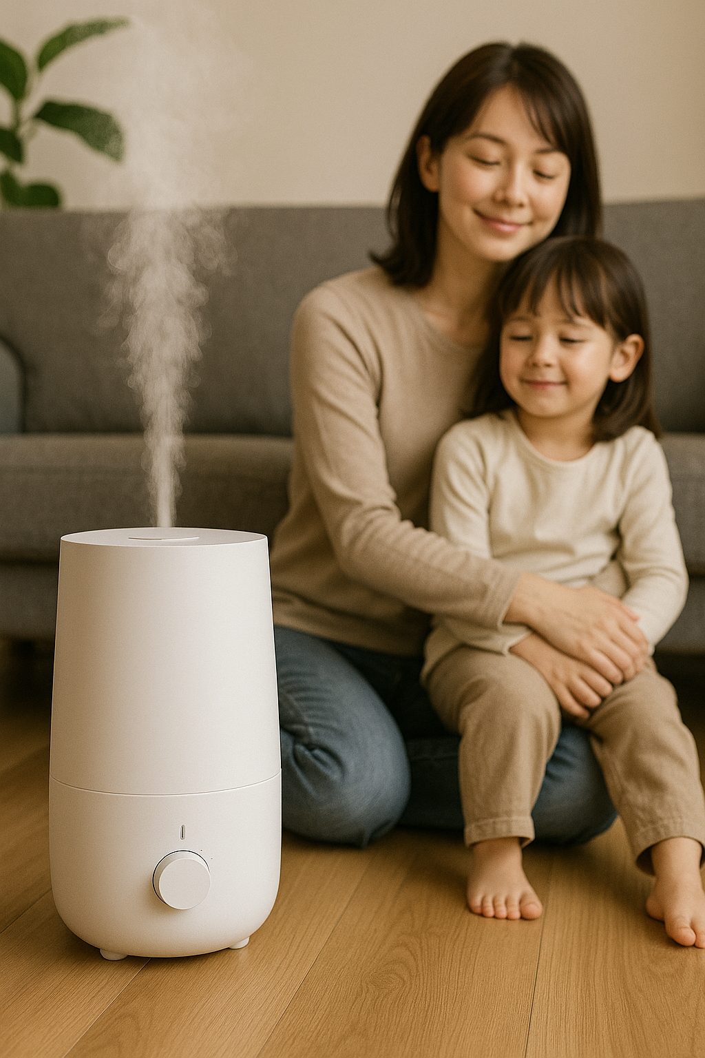 小さな子がいると風邪予防や肌の乾燥対策が気になりますよね。でも夜中のモーター音とか、加湿器のゴボゴボ音がうるさいと寝かしつけの大敵にも…。その点、HX-02は静音設計だから寝室や子ども部屋でも違和感なく使えるんです。